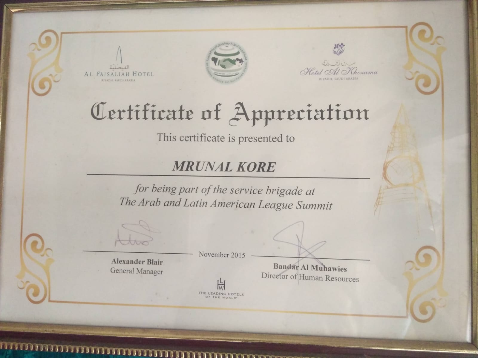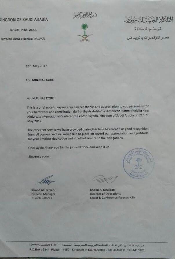 I have been a part of service in Saudi's king palace thrice. In 2017, I was a part of serving honourable, Donald Trump.